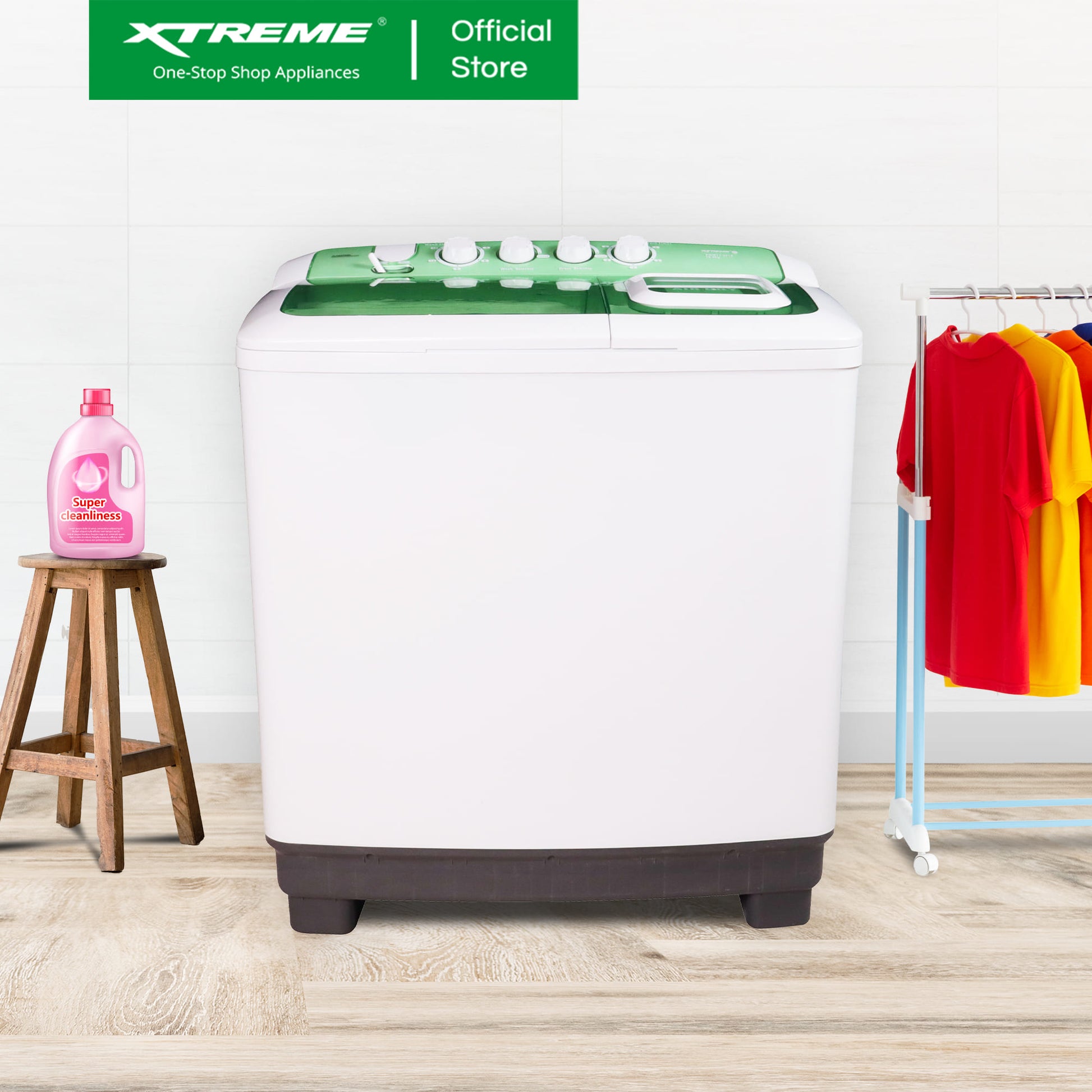 XTREME COOL 10KG Twin Tub Wash and 4.6KG Spin Dry Washing Machine (Green Cover) | XWMTT-0010