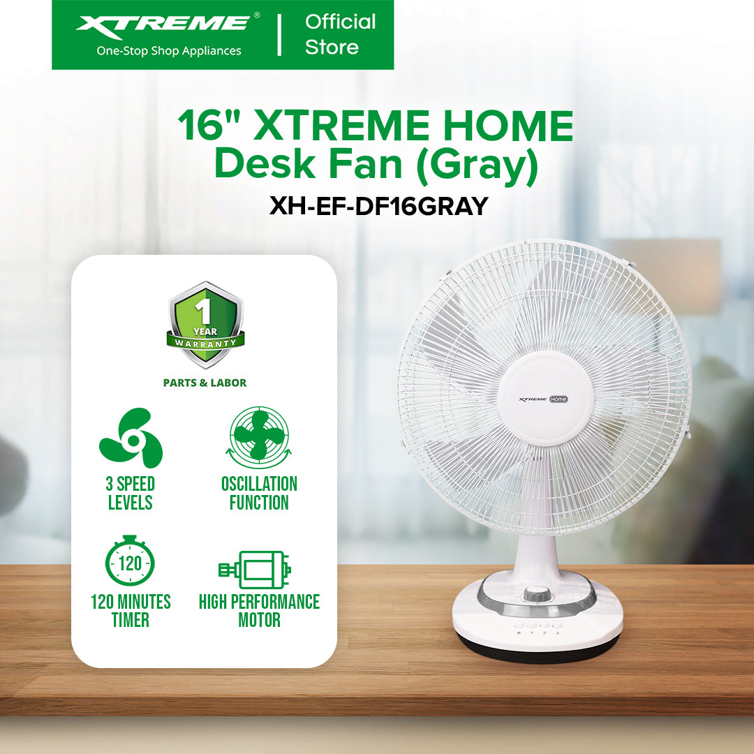 XTREME HOME 16 inches Desk Fan 3-Speed with Timer (Gray Blade) | XH-EF-DF16GRAY