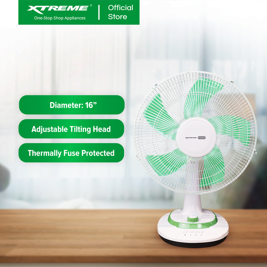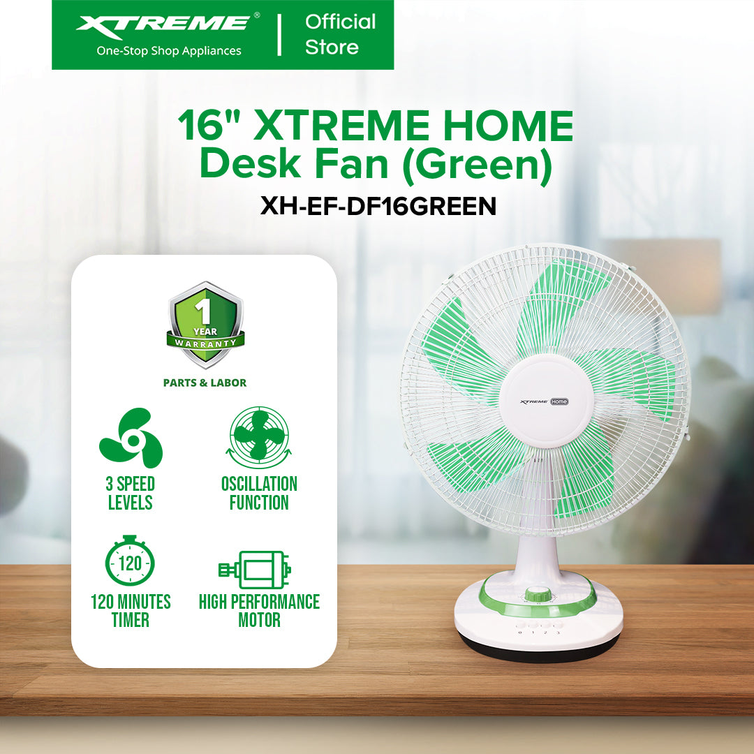 XTREME HOME 16 inches Desk Fan 3-Speed with Timer (Green Blade) | XH-EF-DF16GREEN