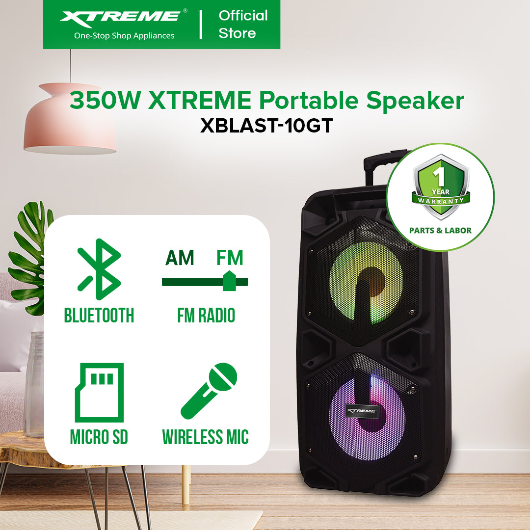 XTREME 350W One Way Portable Speaker System USB Micro SD FM Mic Input Guitar Inpu | XBLAST-10GT