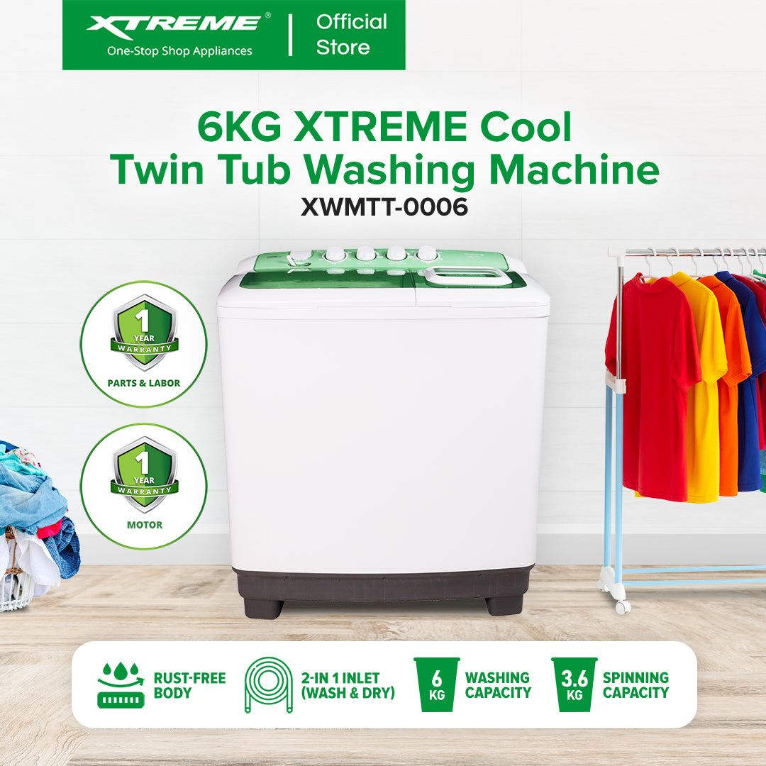 XTREME COOL 6KG Twin Tub Wash and 3.6KG Spin Dry Washing Machine (Green Cover) | XWMTT-0006