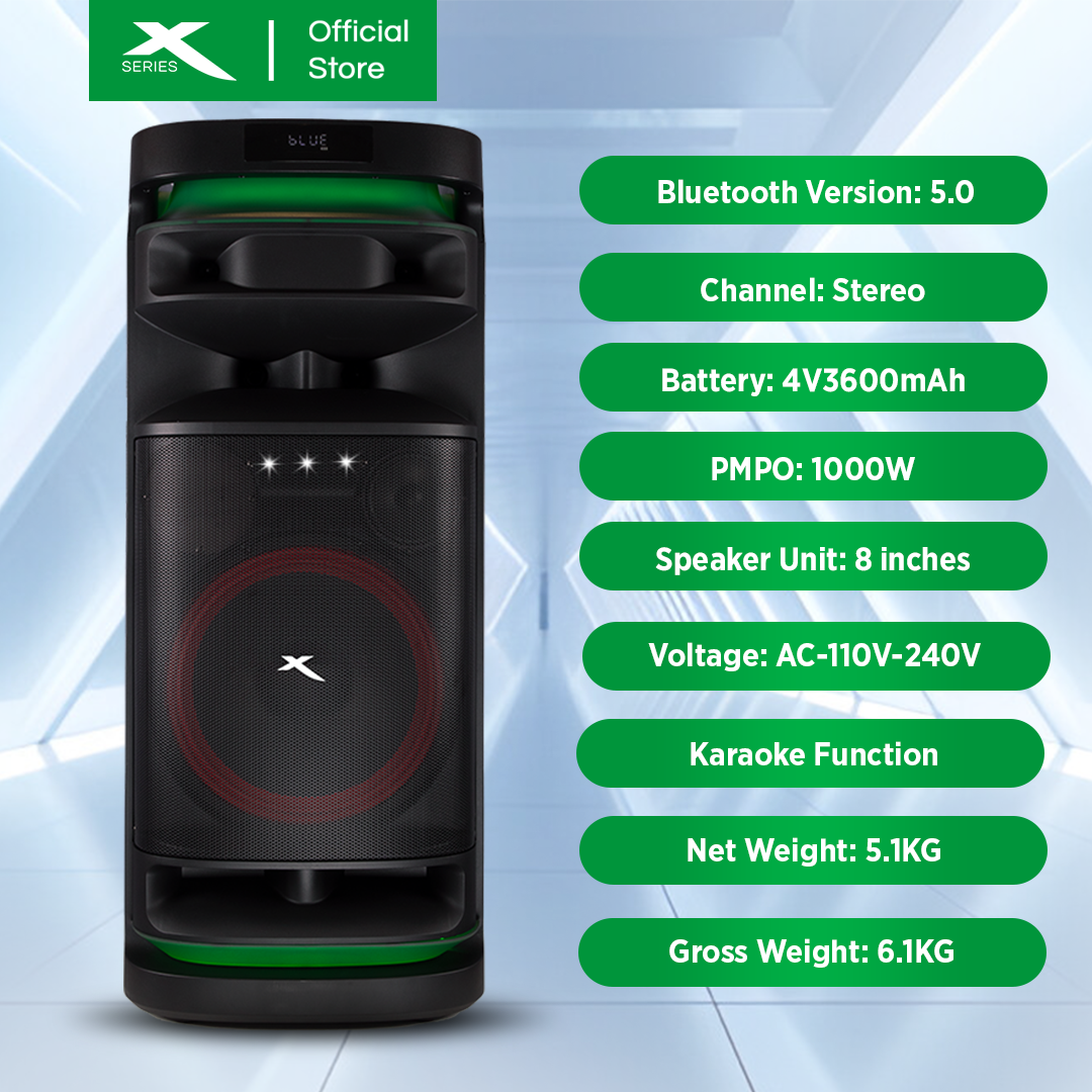X-SERIES 1000W DJ Speaker with 2 Wireless Mic, Bluetooth, TF Card and Aux Input (X-RAVE08X)