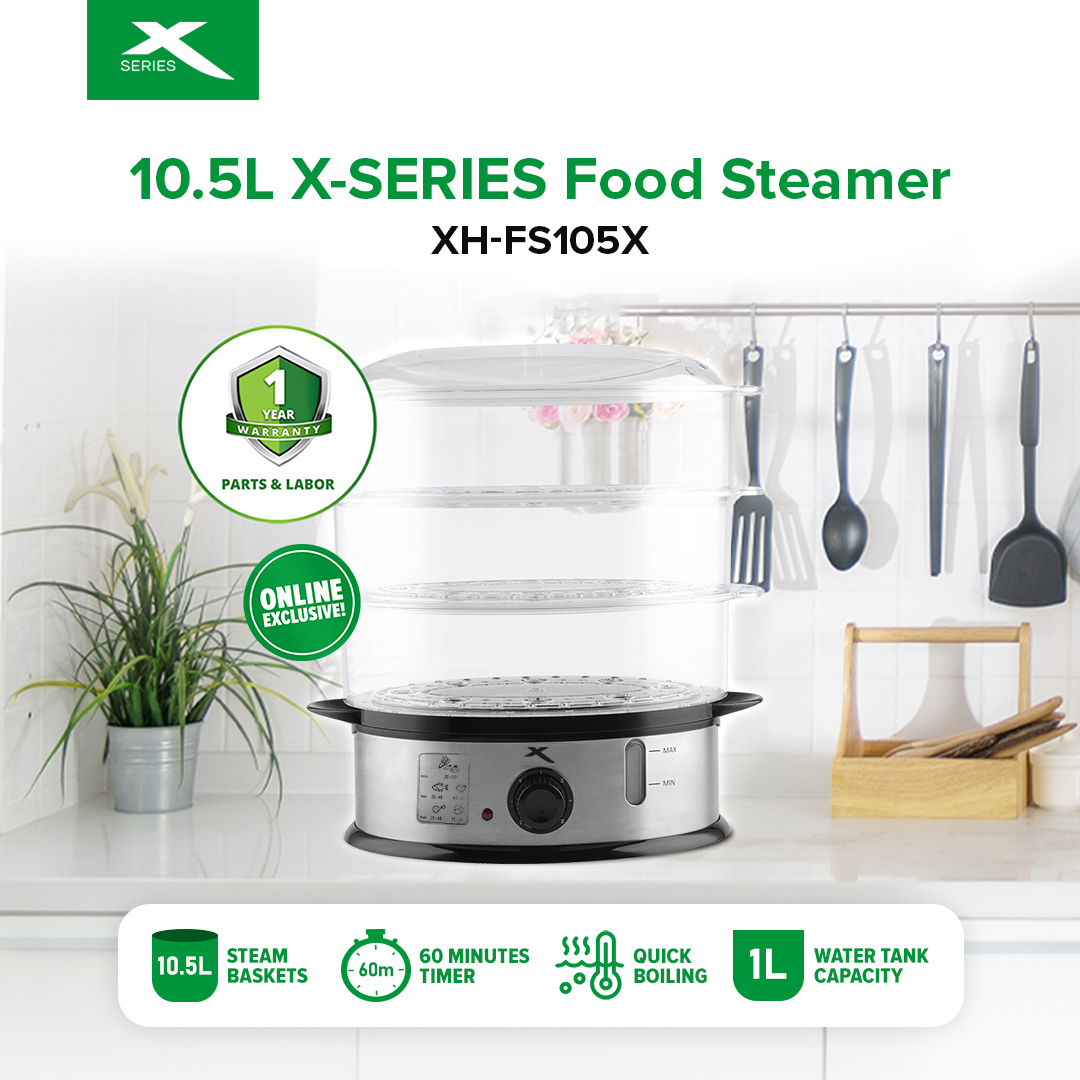 X-SERIES 10.5L Food Steamer Stainless Steel Housing Quick Boiling with Timer | XH-FS105X
